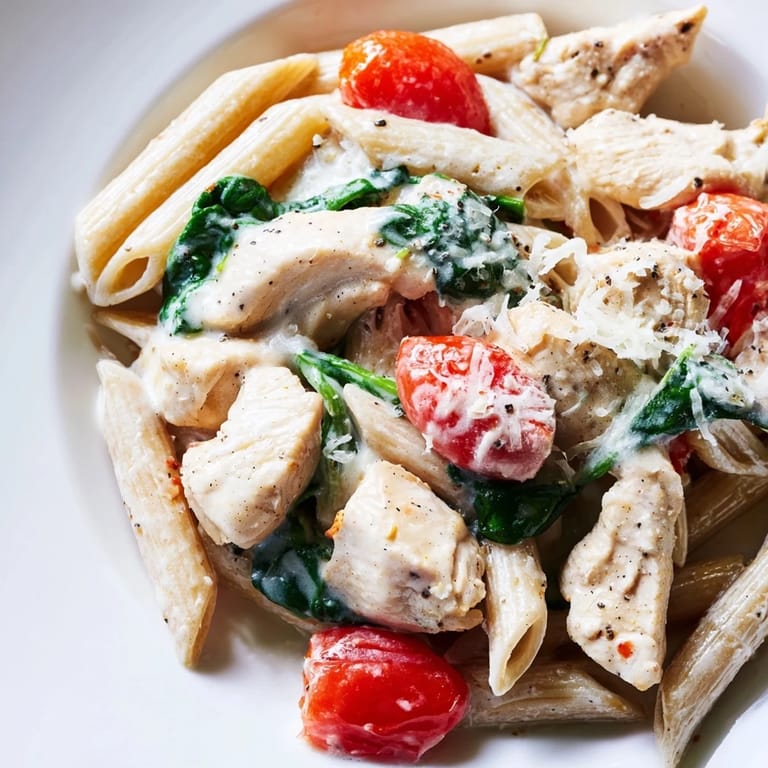 This recipe is forgiving and welcomes improvisation. I've stirred in steamed broccoli florets when I needed more green, tossed in a handful of frozen peas straight from the freezer, and even swapped the chicken for cooked chickpeas when my vegetarian friend came over. If you want a little heat, a pinch of red pepper flakes in with the garlic works beautifully. Leftover roasted vegetables fold in nicely too, just add them at the end so they warm through without turning mushy.