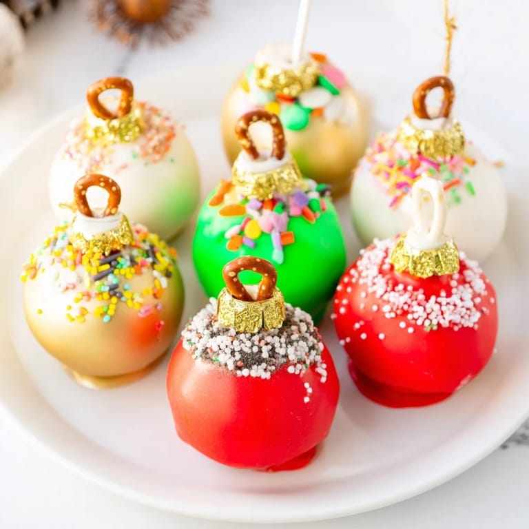 Save to Pinterest A festive and eye-catching dessert featuring cake pops decorated as colorful holiday ornaments, perfect for parties and celebrations.