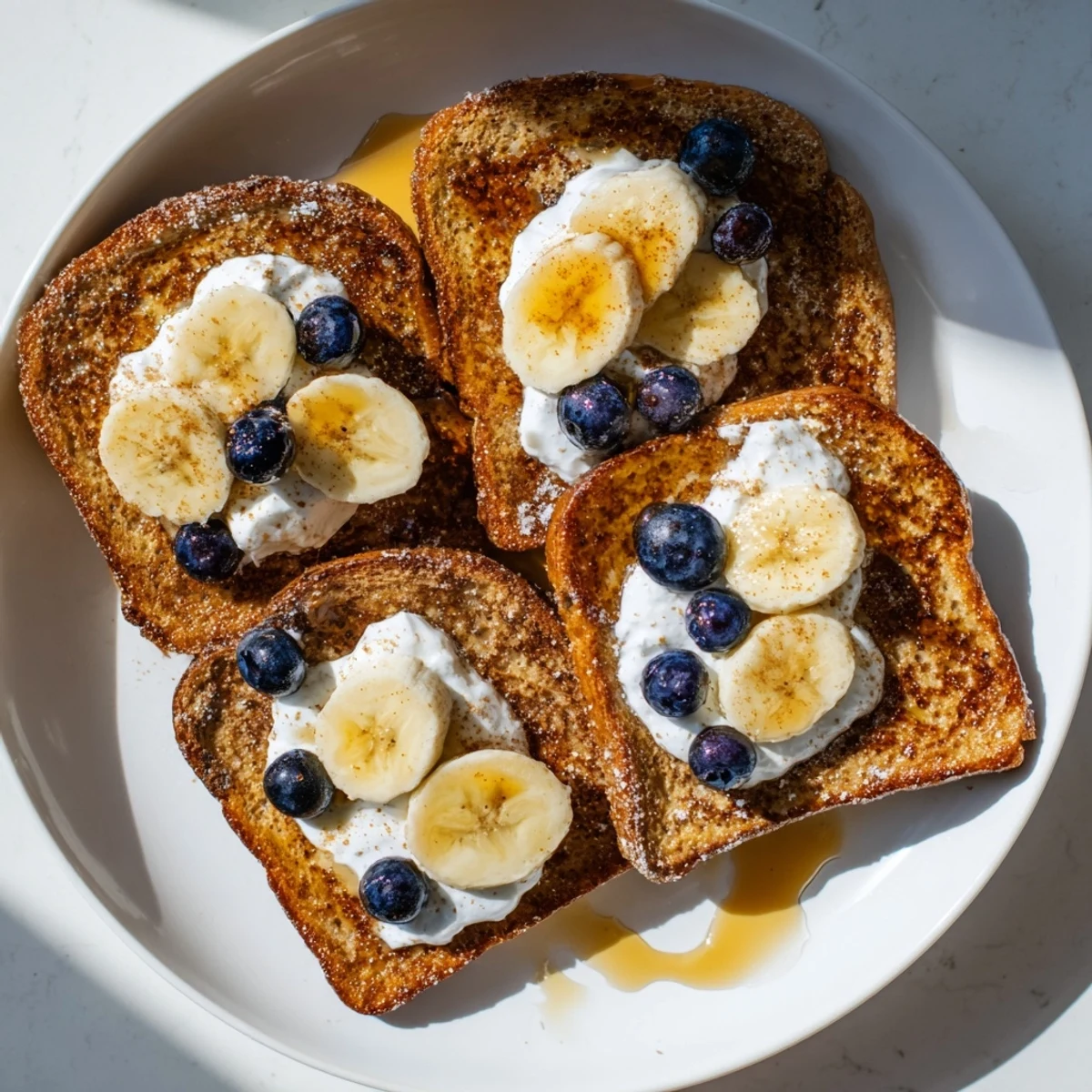 - Serve immediately with berries, bananas, extra yogurt, or drizzled maple syrup while the toast is still warm.