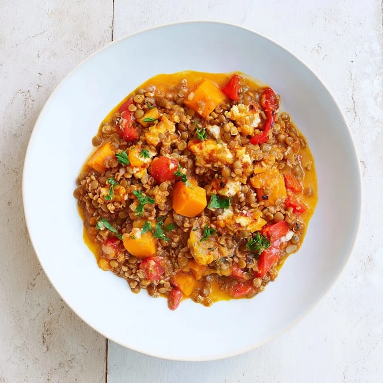 Save to Pinterest A comforting, rustic one-pot meal featuring nutty whole wheat berries, tender lentils, and a richly spiced tomato curry. Perfect for a wholesome, warming dinner.