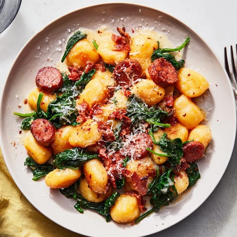 Save to Pinterest A hearty, comforting skillet meal featuring pillowy gnocchi, earthy mushrooms, and savory sausage in a fragrant, creamy sauce—perfect for cozy evenings.